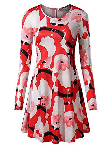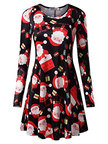MsBasic Women's Long Sleeves Christmas Dress Xmas Gifts Print Flared A Line Midi Dress Medium Santa Claus