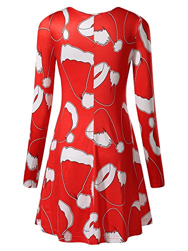 MsBasic Women's Long Sleeves Christmas Dress Xmas Gifts Print Flared A Line Midi Dress Medium Christmas Hat