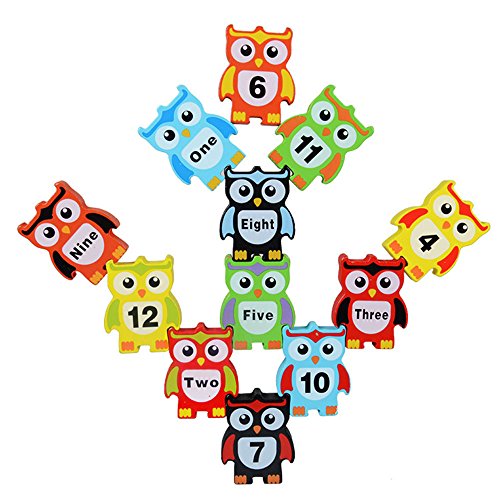 -. Title : Sunshinetimes 12Pcs Wooden Owl Stacking Blocks Toy Set Educational Building Blocks Toy Balance Game for Kids Learning Numbers & Words, Ideal Christmas Birthday Gift