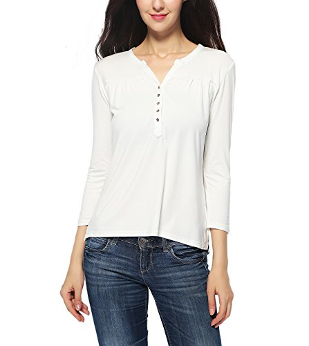 -. Title : Women's V-neck 3/4 Sleeve Organic Bamboo T-shirt Henley Top