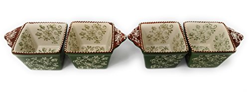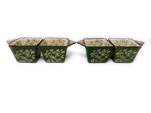 (Temptations)/Kitchen Dining/Cookware Baking/DIRECT FROM USA/Temp-tations Set of 4 Ramekins Mini Bakers EZ Hold 10oz Single Serving (Floral Lace Green)