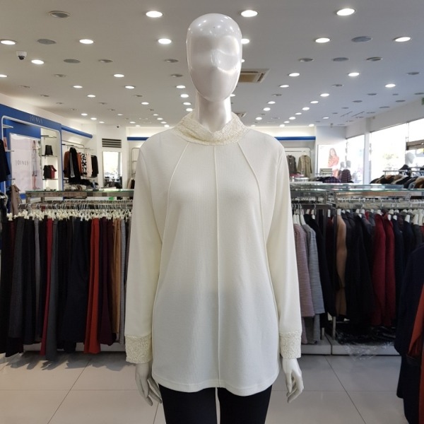 목선 소매끝 레이스포인트 폴리스판소재 루즈핏 티셔츠-CA7W1-WKL090-130