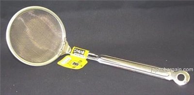 Product Description This Fine Mesh Strainer is Great for Skim Oil * Made in Japan * Dimension: 9in Long, 3-1/8in Diameter * Material: Stainless Steel * 0