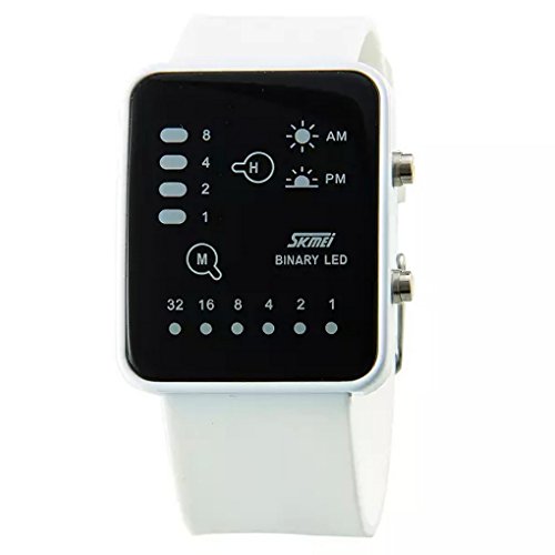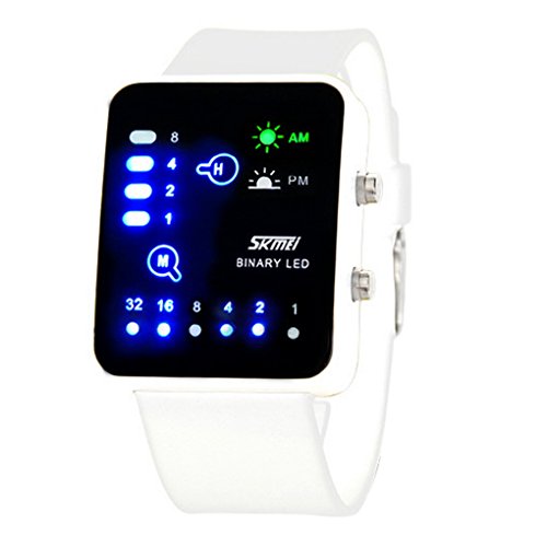 -. Title : SKMEI Technological Sense Binary Digital LED Decoration Waterproof Boys Girls Casual Wrist Watches - White