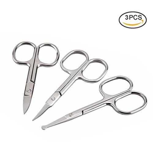 Pretty See Nose Hair Scissors Eyebrow Scissors Stainless Steel Facial Hair Scissors, Set of 3