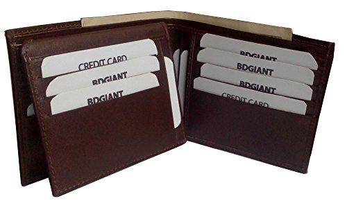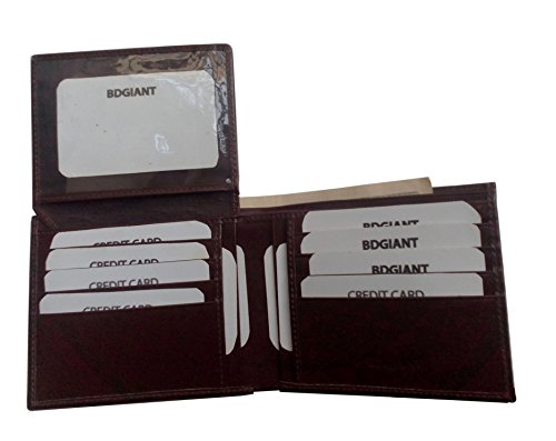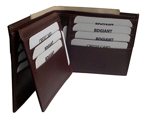 Versatile, durable and highly functional, this Men's Bifold Wallet Flip Up ID Window from Bdgiant keeps you feeling sharp and organized. This classic leather wallet has a bi-fold/ trifold design with abundant credit card pockets and space for bills and IDs Ideal for everyday use, this men's wallet holds everything you need in one sleek, compact package. Multiple card slots, a cash compartment and a clear plastic sheath for easy access to your ID. It's a smart choice to keep your cash, cards and bills safe. It has 2 full bill/note/currency pockets, 14 credit/ debit card pockets and 1 clear ID/ Driving License pockets and Non-removal Flip ID and 2 slip-in pockets for receipts, or more business cards. Measurement: Length: 4.9 inch x Width: 3.9 inch X High: 0.5 inch. This Black or brown leather extra capacity 14 credit card and 1 clear id holder slim bifold/trifold men's wallet makes a nice practical gift for birthdays, graduations and anniversaries. This wallet perfect gift for Men.