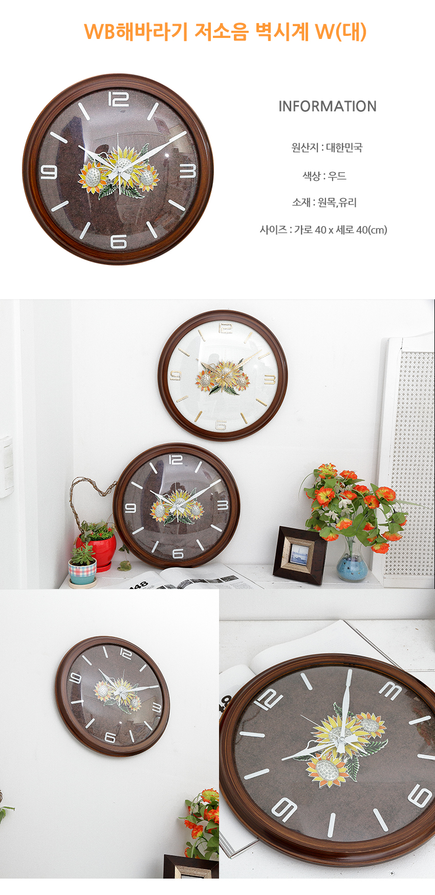 - 품명 및 모델명WB해바라기 저소음 벽시계 W(대)
