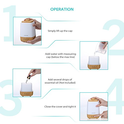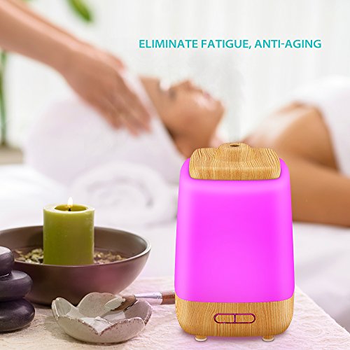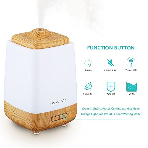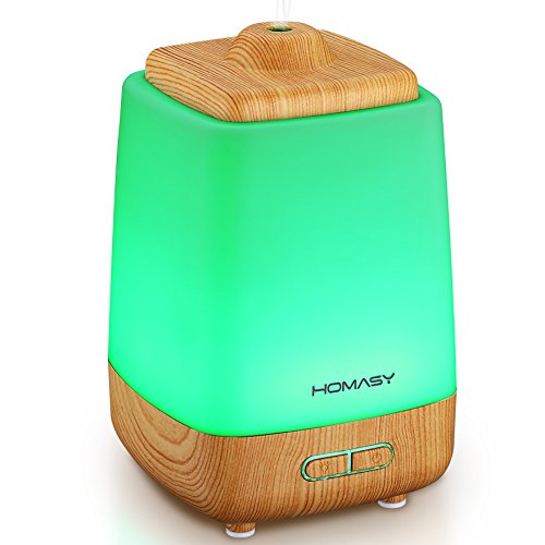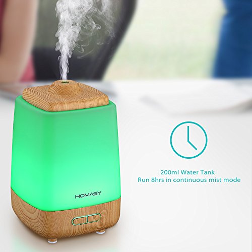 Homasy 200ml Aroma Essential Oil Diffuser in Wood Grain with 7 Color LED Lights Changing for Spa Home Office