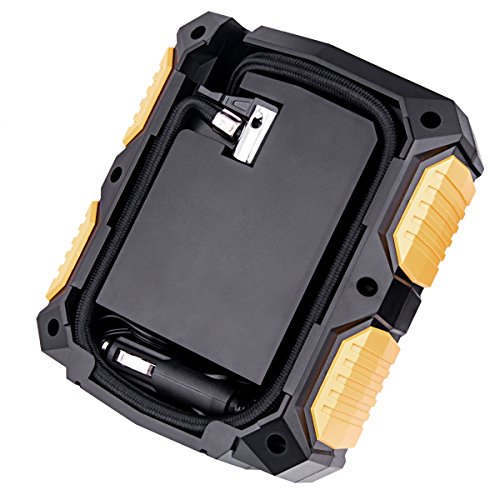 ★HIGH QUALITY DURAT MATTERIAL-Tire inflator build with high quality materials, it is very durable .The hose is nicely tucked underneath the compressor and out of the way when not in use. Air pressure indicator is great for when you need to see how much air pressure is needed and not over inflate.