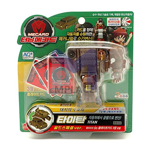 -. Feature : Korean TV Animated Series "TURNING MECARD" / Car Size : 7.5x4.5cm (2.95x1.78 inch) / Product Configuration : Robot Car, 3 Plate cards, Korean manual & Sheet field / Age range : 6 Years+