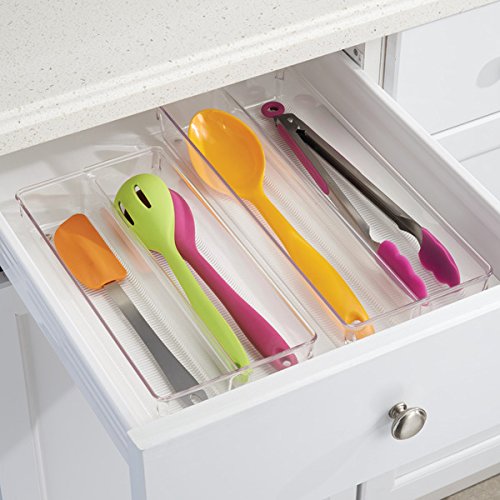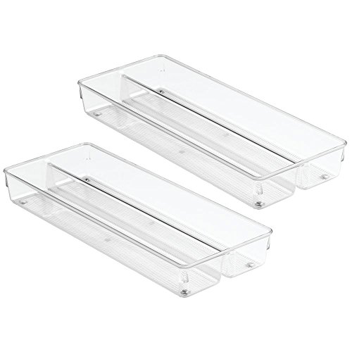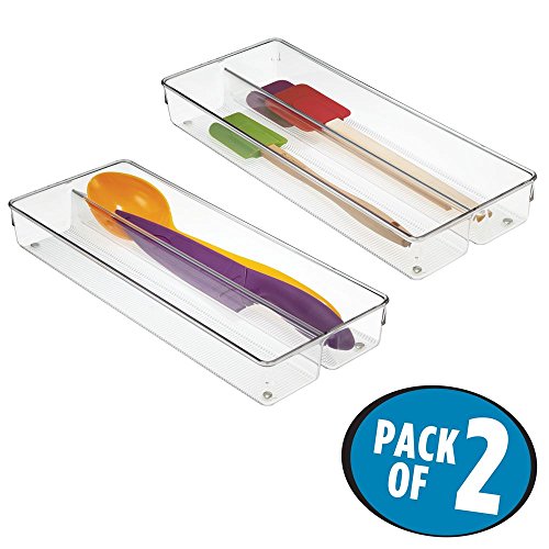 InterDesign Linus Twin Kitchen Drawer Organizer for Silverware, Spatulas, Gadgets - 6" x 15" x 2", Set of 2, Clear