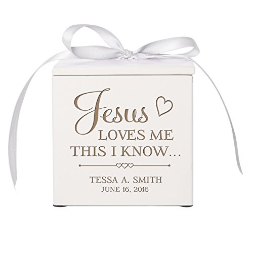 -. Title : Personalized Baby Birth keepsake box for Newborn boys and girls custom engraved Jesus Loves Me This I Know (Ivory)