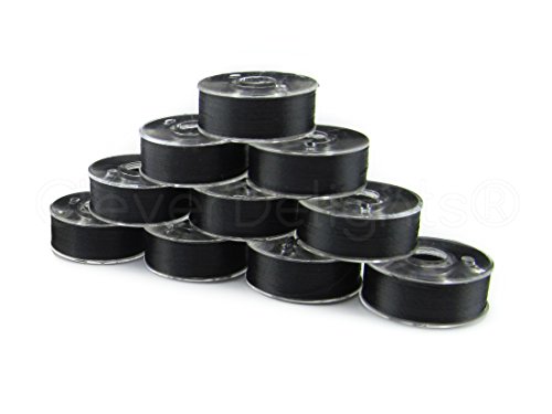 24 Pack - CleverDelights Black Prewound Bobbins - 60wt - Size L Bobbins - SA155 Replacement - 3/8" x 13/16" - For Brother Embroidery Machines - CS8072, PC2800, PC3000, PC6000, PC6500, PC-7000, PC-7500, PC-8200, PC-8500, PC-8500D, PE-100, PE-150, PE150V, P