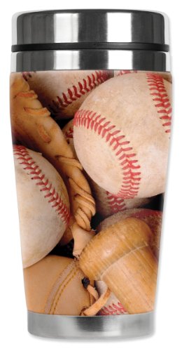Mugzie Baseball Bats & Balls Travel Mug with Insulated Wetsuit Cover, 16 oz, Black