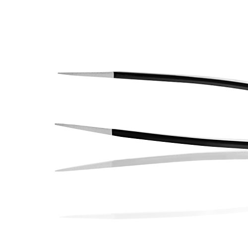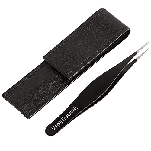 BEST POINT TWEEZERS SET FOR INGROWN HAIR Includes CASE and Ebook - Black Stainless Steel Tweezer Ingrown - Professional Sharp Pointed - Great for hairs tweezer, hair removal and men