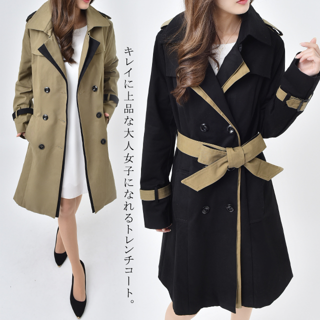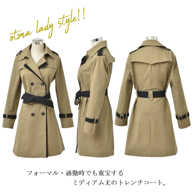 上品大人Ladyを演出する美ライントレンチコート!ウエストリボン付き♪