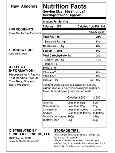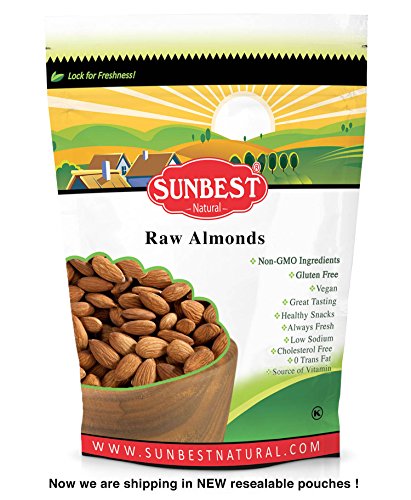SUNBEST Whole Raw Almonds (Whole, Raw, Shelled, Unsalted) in Resealable Bag (3 Lb)