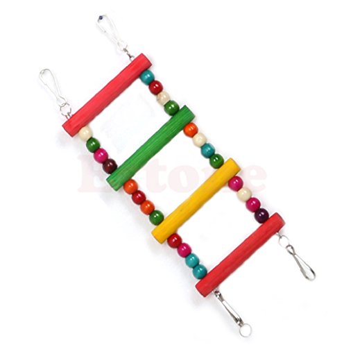 100% Non Toxic, safe food grade and colorful food color, ideal beak exercise and hours of enjoyment An ideal place designed for your little friends to play and climb, easy install in the cage Give your pet a treat and have hours of fun watching them play Made out of wooden which includes bells, and acrylic rings your feathered friend will have hours of fun Suitable for many small animals Hamsters, Gerbils, Mice, Rats, little parrot, etc 4 metal clasps included Quantity:1 Pc Specification: Material: Wood Steel Rim Color: Colorful Ladder Wide: 10 cm / 3.94" (Approx.) Thick:1.5 cm / 0.59" (Approx.) Distance between each other:5 cm / 1.97" (Approx.) Size Ladder Length Total Length 4 Steps 21cm/8.27" 31cm/12.2" 5 Steps 27cm/10.63" 37cm/14.57" 6 Steps 34cm/13.39" 44cm/17.32" 8 Steps 47cm/18.5" 57cm/22.44" 10 Steps 59cm/23.23" 69cm/27.17" 12 Steps 71cm/27.95" 81cm/31.89" Note: Natural wood is not perfect, cracks or tree eyes are unavoidable. It will fade when meeting the water because no harmful color fixing gel included. Size for manual measurement, there may be a 1 to 3 cm error, belongs to the normal phenomenon. Due to the difference between different monitors, the picture may not reflect the actual color of the item. Thank you! 0