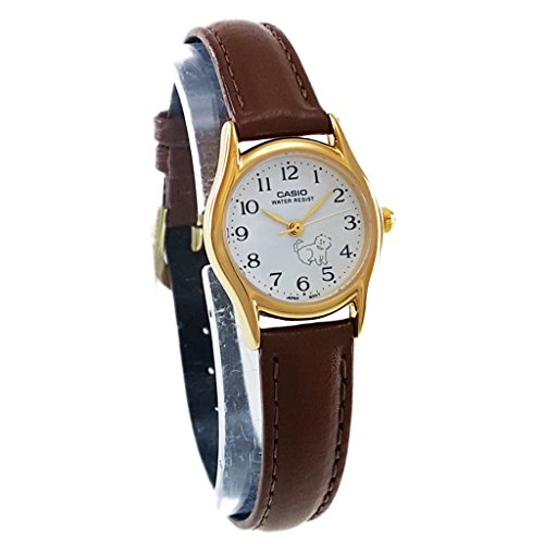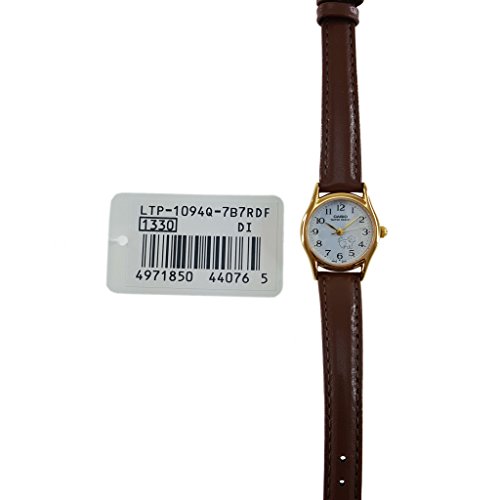 -. Title : Casio Women's LTP1094Q-7B7 Brown Leather Quartz Watch with White Dial