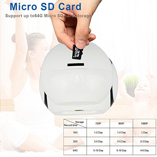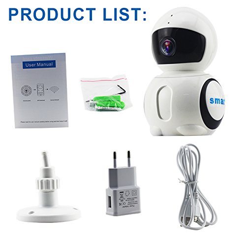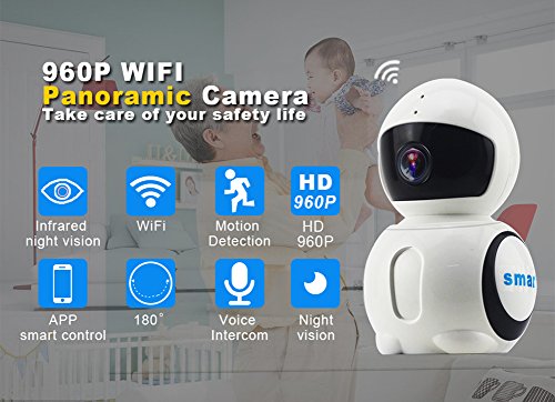 -. Feature : TOTAL HOME MONITORING: Uses its remote control Pan/Tilt function of Smar wifi security surveillance camera for wide area monitoring and range. Can zoom horizontally 350 degree and vertically 100 degree to extend view. Keep an eye on kid, pet, and baby. / TWO WAY AUDIO:See and hear in home or office from anywhere that has internet. Utilizes two-way voice communication and intercom of wireless home security camera. Use your smartphone to communicate from anywhere. / STUNNING HIGH DEFINITION VIDEO :This indoor security IP camera allows you to view your home on iOS or Android smartphone in 960P high definition resolution. Clear images and seamless video day or night using 6 infrared lights in dark conditions, which can be set to on/off and automatic / A RELIABLE HOME GUARD:Works as a reliable home or office security camera. On-board motion detection camera can sense movement in range and automatically take pictures, video or send alarm notifications. Connect up to 32 devices to review the camera from anywhere in the world! / PLUG & PLAY CONVENIENCE:Simple to install and use. Simply scan QR code to download the Free App, to use with phone remotely or connect to PC. Record and playback with Micro SD card, save any important moment for image and video storage.