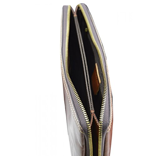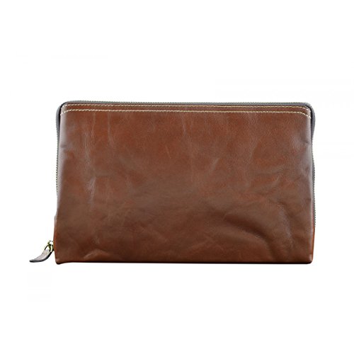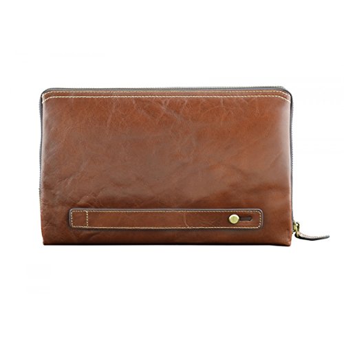 Product Description Genuine Leather Unisex Clutch - Harvey Genuine 100% Italian leather clutch. Essential and trendy design, perfect for those who like practicality without renouncing elegance. Outside - 100% genuine Italian leather - zip closure - leather band with metal button - leather and metal details Inside - synthetic fabric lining - two separate compartments - pocket with zip closure - credit card pockets External Dimensions 26 x 3 x 16 cm Weight 0.3 Kg 0