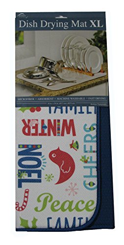 Envision Home Microfiber Dish Drying Mat, X-Large, 18 by 24-Inch, Holiday Typography