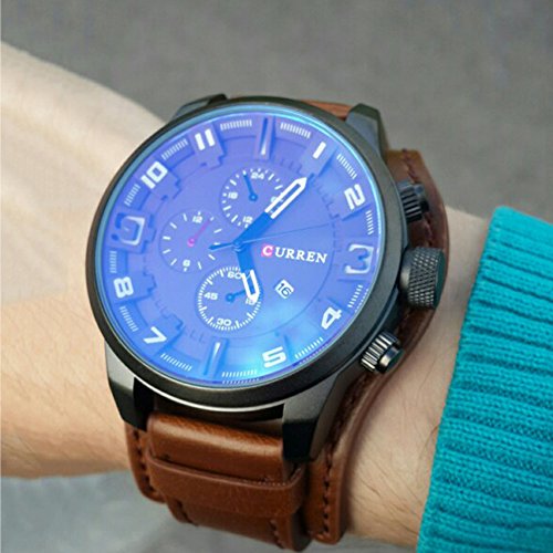 현재 가장 유행해 있는 심플과 얇다디자인고, 멋진 레더 밴드와 참신한디자인의 철유리 페이스.비지니스,일,평상시 생활,스포츠 등 적용입니다