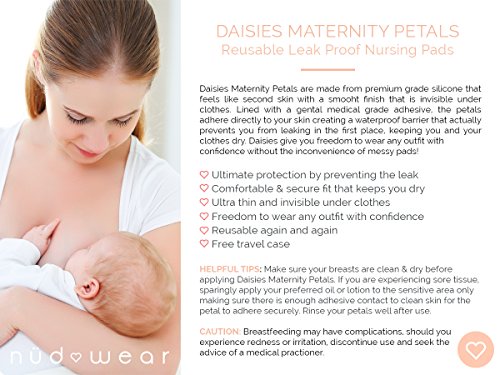Studio : Nudwear Publisher : Nudwear Binding : Baby Product Product Description Our Daisies Maternity Breastfeeding Petals are designed With You in Mind! Lined with a gentle medical-grade adhesive, our ultra soft breastfeeding pads give you a secure, waterproof barrier that keeps you dry and your outfits spotless. You'll be able to get dressed up in any outfit you want while knowing that you won't have to worry about someone seeing the waterproof pasties or of any leaking. Ensured Comfort and Protection With a smooth, skin like silicone build our reusable nursing pads feel like an extension of you. We wanted you to experience absolute comfort no matter what, so we designed our washable nursing bra pads to be seamless and discreet under clothing, whether used with a bra or not. The Most Incredible Baby Shower Gift You Can Get Help your friends prepare for their child by giving them these incredible silicone pasties that keep them comfortable. Helping You Through Motherhood At Nudwear our goal is to give you all of the tools to be as comfortable as you can while helping your baby grow. With our no-show pasties, you won't have to constantly feel as if you're leaking thanks to the secure adhesive that our contoured nursing pads are lined with. No more worries and no more stress about not finding the right outfit. What Your Purchase Gets You When you purchase from us you get 2 washable and reusable waterproof breastfeeding pads, along with a small, easy to conceal carry case that fits in any handbag or purse. Product Dimensions 3.5 inches x 3.5 inches x 2 inches Product Color Variations Nude, Brown 0 |