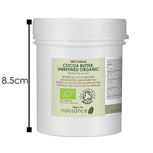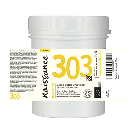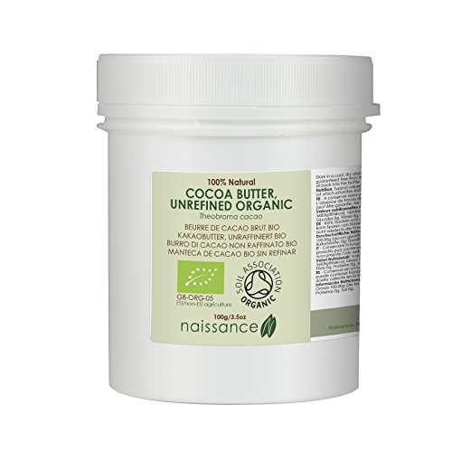 Naissance Organic Cocoa Butter Unrefined 3.5 oz. Use for DIY Lip Balms, Moisturizing for Face, Body, Hair and Stretch Marks.