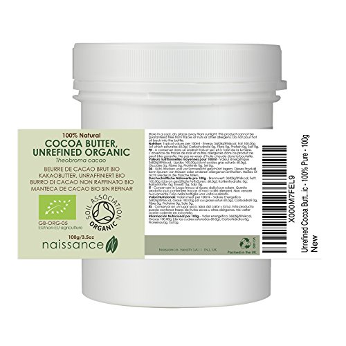 - 100% Pure and Natural, unrefined Cocoa Butter, certified Organic by the UK Soil Association.
