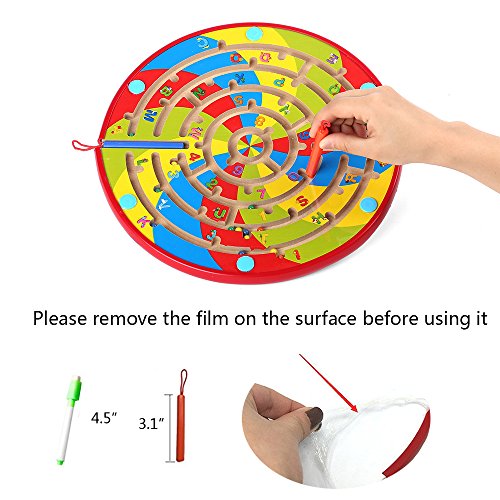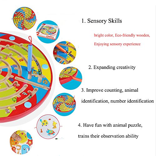 -. Feature : MATERIAL: Sturdy construction and wooden board covered with thick acrylic, smooth rounded edges for safety, size: 11.5 x 11.5 x 0.8 inches, weight: 745g / 3 IN 1 TOY: The cool magnetic maze is a multifunctional toy, one side is bead maze puzzle, and another side is dry erase easel board as well as animal jigsaw puzzle; 1-9 number and 26 alphabet on the magnetic labyrinth, help children to improve counting, animal identification, number identification, and problem solving skills / SAFE FOR CHILDREN: The magnetic wand is attached so it won't get lost and balls are enclosed inside the maze, package included Maze Puzzle, assorted Magnetic Puzzles, 2 Magnetic Pen, Dry Erase Board,1 Dry Erase Pen / Parent-child interactive find track way magnetic maze puzzle slide early childhood learning educational toys, improve children's number, trains their observation ability and logical thinking ability / Suitable for 3 year plus, approved ASTM and CPSIA test, great birthday gift and Christmas present for kids