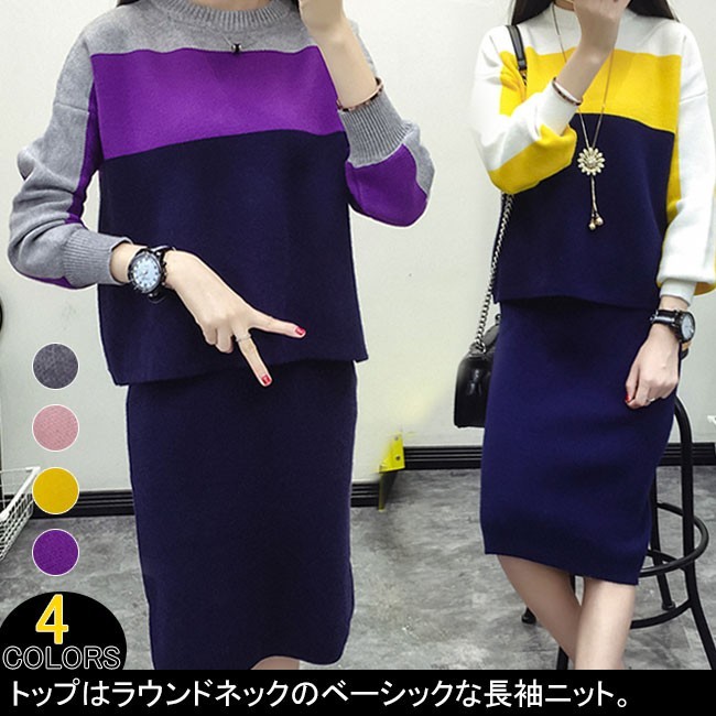 | 商品名 | ニット ワンピース 2点セット セットアップ 切り替えニットワンピ 長袖ニット ミディアム丈ニットスカート 上下セット 秋冬ワンピース 2018春冬新作 |