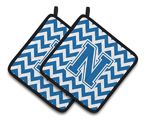 Caroline's Treasures Letter N Chevron Blue & White Pair of Pot Holders CJ1056-NPTHD, 7.5HX7.5W, Multicolor