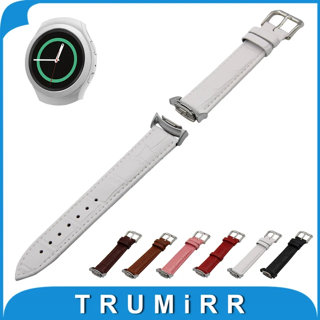 | [해외]정품 가죽 시계 밴드 어댑터 samsung gear s2 SM-R720/R730 악어 곡물 스트랩 손목 팔찌 블랙 브라운 화이트 |