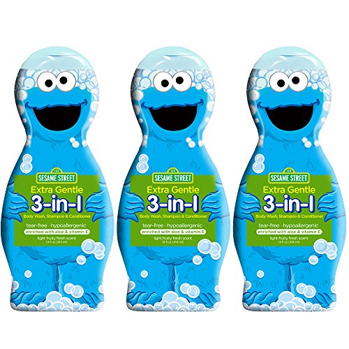 -. Binding : Misc. -. Brand : Sesame Street -. EAN : 0735303280018 -. Feature : 3 in 1 Body Wash, Shampoo and Conditioner / Tear-free / Hypo-allergenic / Aloe and Vitamin E / Dermatologist and Pediatrician tested -. IsAdultProduct : 0 -. Label : The Village Company -. Manufacturer : The Village Company -. MPN : 311571 -. NumberOfItems : 1 -. PackageQuantity : 3 -. PartNumber : 311571 -. ProductGroup : Beauty -. ProductTypeName : BEAUTY -. Publisher : The Village Company -. Size : 16 Ounces -. Studio : The Village Company -. Title : Sesame Street Extra Sensitive 3 in 1, 16 Oz. 3-pack -. UPC : 794168231931