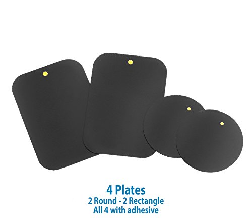 Mount Metal Plate with Adhesive for Magnetic Cradle-less Mount -X4 Pack 2 Rectangle and 2 Round (Compatible with WizGear mounts)
