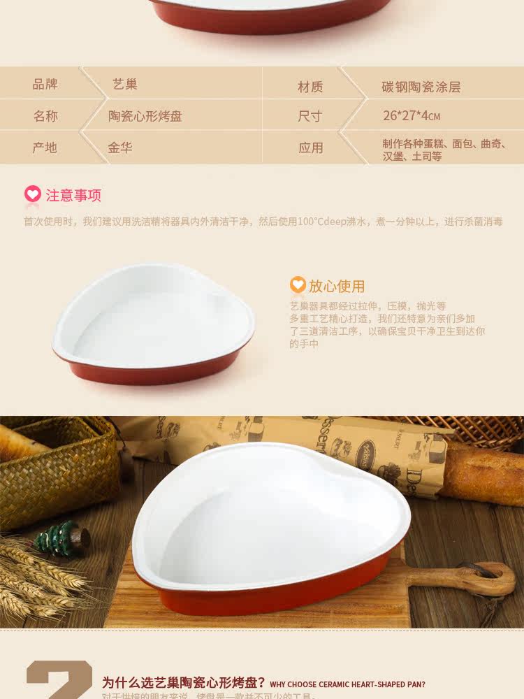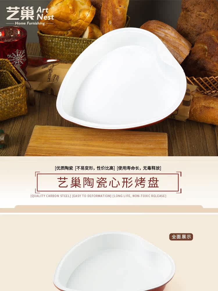艺巢 烘焙模具 陶瓷心形烤盘 心形蛋糕烤模心形披萨烤盘 烘焙工具
