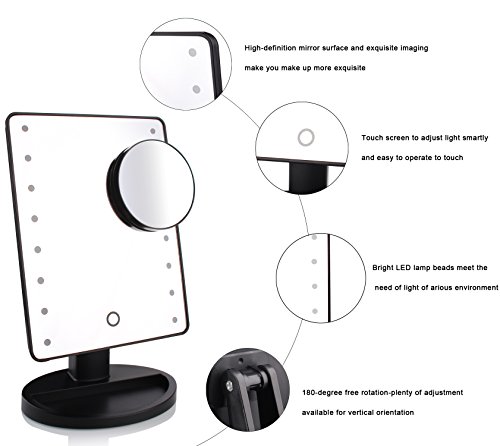 - With a removable and powerful 10X Magnification Spot Mirror: Make sure every detail of your hair and makeup are in place, works best for putting eyeliner, mascara, eyebrows, contact lens, etc. Show more beautiful.