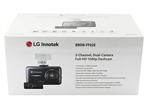 LG 2-Channel Full HD Front + Rear 1080p Cameras - 3.5" LCD Screen, 32GB (BBDB-FF02E) with Battery Protection Hardwire Kit And GPS Antenna for ADAS Lane Departure Warning
