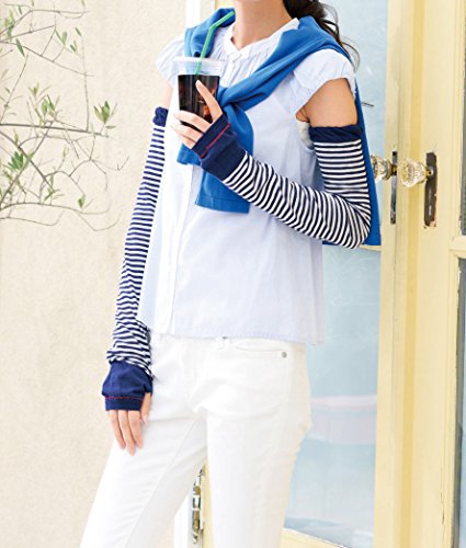 자외선 차단 자외선 차단제 세련된 마린 보더 무늬 UV 컷 장갑 롱 장갑 팔토시 여성 여성 여성