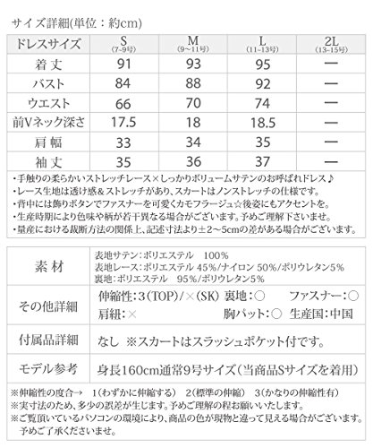 -. Feature : 手触りの柔らかいストレッチレース×しっかりボリュームサテンのお呼ばれドレス / レース生地は透け感&ストレッチがあり、スカートはノンストレッチの仕様です。 / 背中には飾りボタンでファスナーを可愛くカモフラージュ☆後姿にもアクセントを。 / 生産時期により色味や柄が若干異なる場合がございます。予めご理解下さいませ。 / 量産における裁断方法の関係上、記述寸法より士2?5cmの差がある場合がございます。