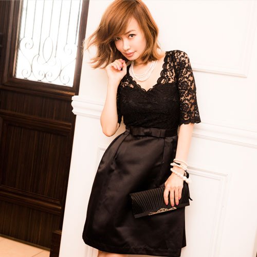 -. Title : CREAM(クリーム) パーティードレス 上品リボン&総レースミニドレス レディース