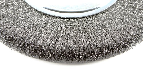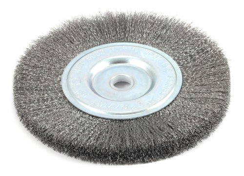 Forney 72747 Wire Bench Wheel Brush, Fine Crimped with 1/2-Inch and 5/8-Inch Arbor, 6-Inch-by-.008-Inch