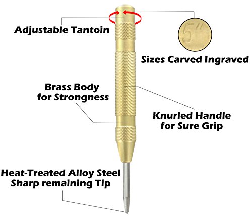 ✓ DESIGN: The Drixet Center Puncher is a Little Pocket Size Tool which is very handy when your hands are full of tools - Top cap is adjustable to control the striking force - deeply knurled surface provides a sure grip.