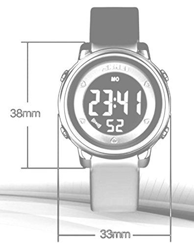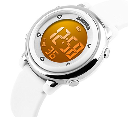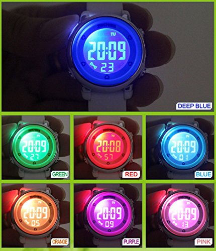 SKMEI 아이 손목시계 방수 키즈 손목시계 스포츠용 디지털 알람 스톱워치 7 채LED날짜 요일 사내 아이 소녀 귀엽 기프트 여름 화이트