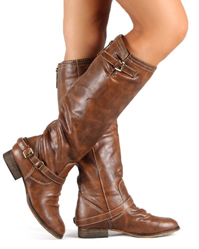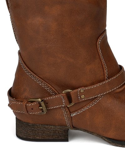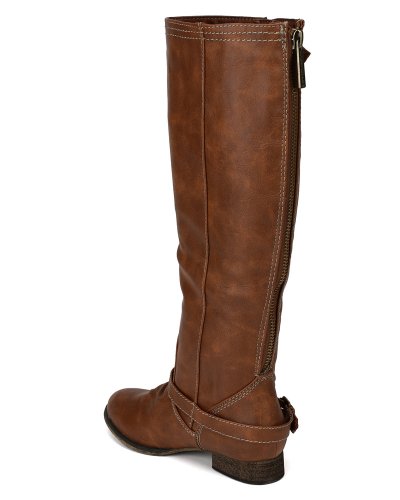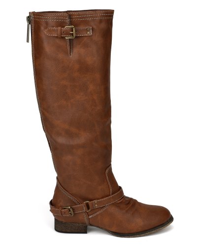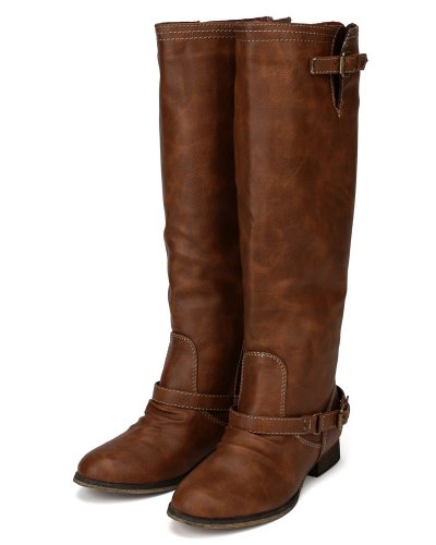 Studio : Breckelles Publisher : Breckelles Binding : Apparel Product Description Bring design to your wardrobe with this fabulous riding-inspired boots. It features round toe front, ruched detail on front vamp, wrap-around buckle strap on ankle, stitching detail, and low heel. Exposed rear zipper closure for easy on/off. Finished with smooth interior lining and cushioned insole for all day comfort. 0