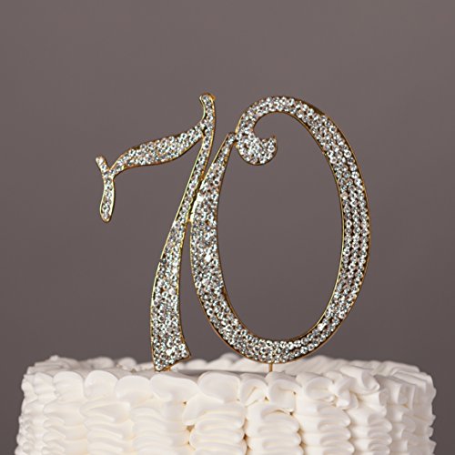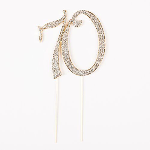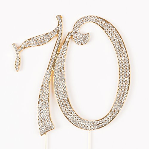 70 Cake Topper for 70th Birthday or Anniversary Party Gold Crystal Rhinestone Decoration (Gold)
