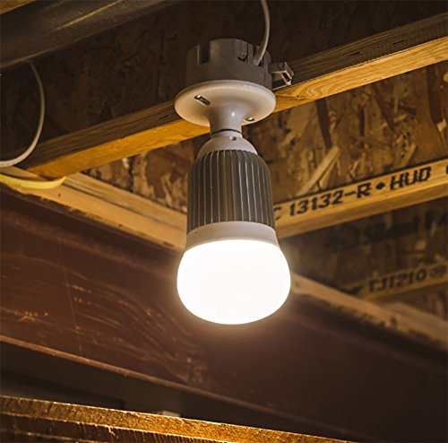 SHATTER-RESISTANT AND WEATHERPROOF - It has shatter-resistant polycarbonate lens, making it perfect to place in basements, garages, and workshop areas. The bulb is weather-proof, and is approved for both indoor and outdoor use.