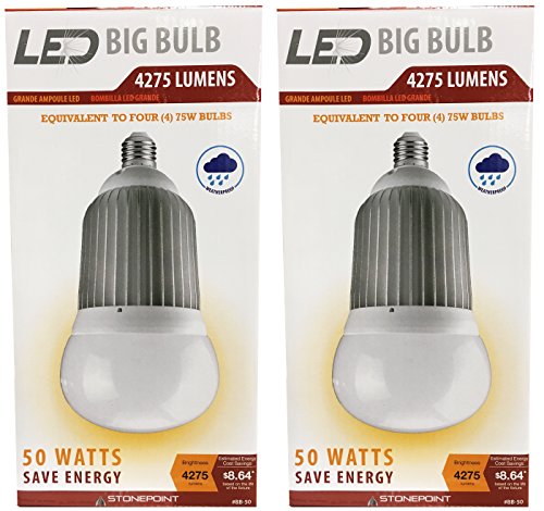 StonePoint LED Lighting Shatter Resistant Big Bulb BB-50 Bright Daylight Bulb Fits Standard Light Socket 4000K and 4275 Lumens - For Shop Light, Garage Light, Workshop (Pack of 2)