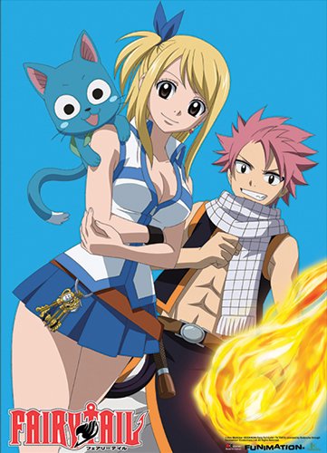 Great Eastern Entertainment Fairy Tail Natsu, Lucy and Happy Turquoise Background Wall Scroll, 33 by 44-Inch